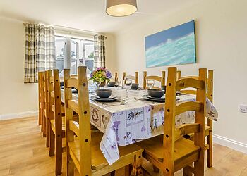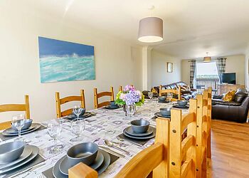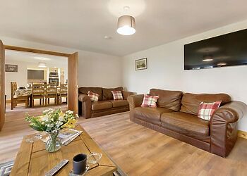 This dog-friendly property welcomes up to five dogs and provides off-road parking for six cars with electric vehicle charging available.